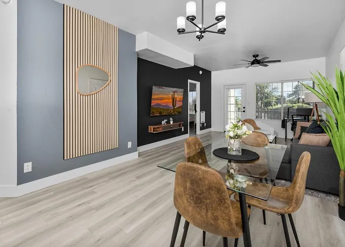 Para aproveitar as suas ferias em Scottsdale, fique no o apartamento Cozy 2Br-Pool, Yoga Rm, Gym, Cabanas, Bbq,Prkng Scottsdale de 2 quartos, que está a uma distância de 2.9 km de Main Street Arts District e a uma distância aproximada de 20 minutes a pé de TPC Scottsdale Champions Course. O apartamento está localizado a alguns minutos de Celebration of Fine Art e dispõe de piscina privada e centro de fitness.